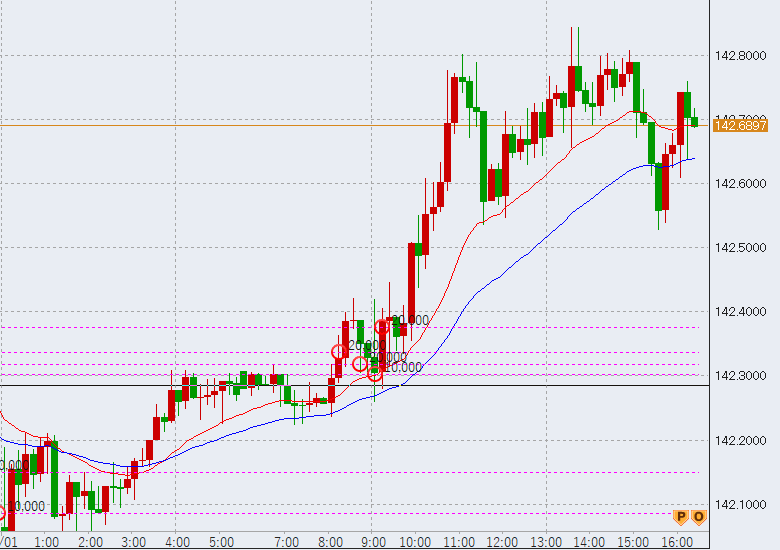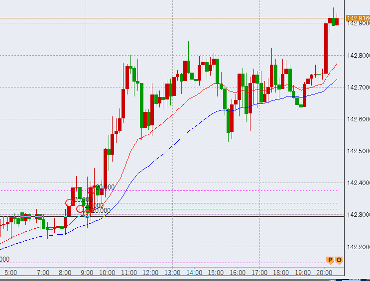 11時過ぎ142.8をマーク。143円に近づいています。
