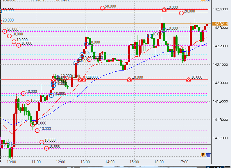 9時過ぎ、お約束の下げ。売り決済し、2万買い追加です。