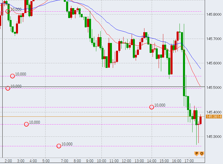 16時過ぎさらに下落。米金利低下の流れです。そろそろ反発していくでしょうか?