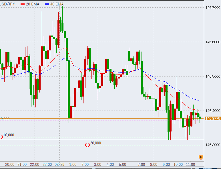 こんにちは真開燦です!ドル円は前日から短期足がレンジ入り。本日朝時点で146.4円付近と、前日とほぼ変わっていません。含み益は+40万円程度。