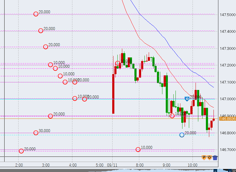 こんにちは真開燦です!本日早朝は、日銀の政策変更の報道の影響で146.9円付近まで下落し、大きく窓を開けてのスタート。8時過ぎには146.3円付近まで回復しています。