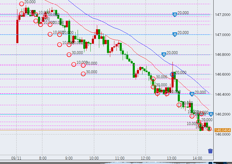 14時過ぎ、146円付近まで下落。この時点で50万程度買いを入れています。
