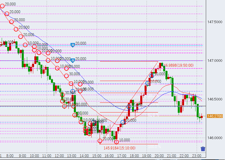 夜。その後147円程度まで反発するもまた反落。明日の朝が楽しみです。