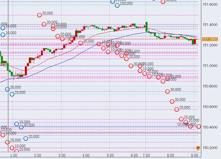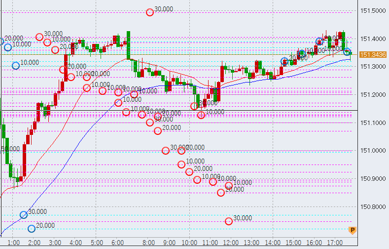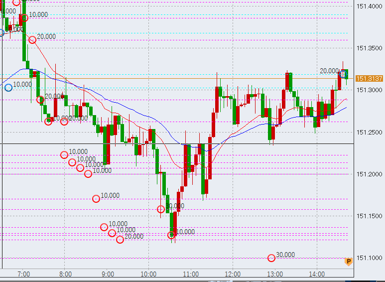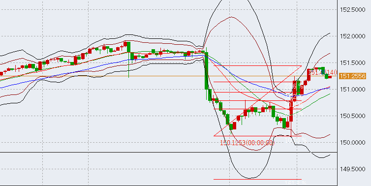 14時過ぎ151.3まで反発上昇。買い4万、売り2万追加しました。今後の値動きが不安なので上昇したら売りを入れ、また収益をロックする予定です。