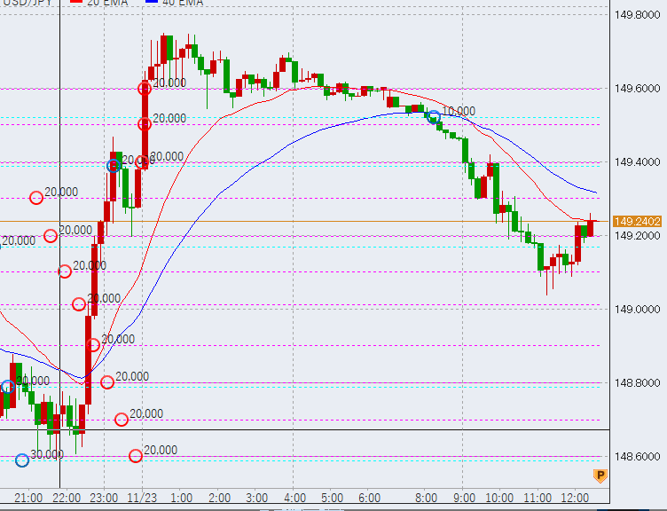 12時過ぎ149円付近まで下落。ここから反発して高値を付けるかに注目です。