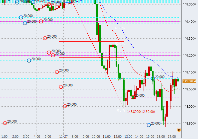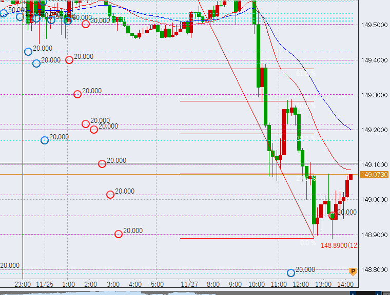 14時過ぎ、148.9円まで下落。さらにもう一段下げそうです。このため、上昇後売りを追加していきます。