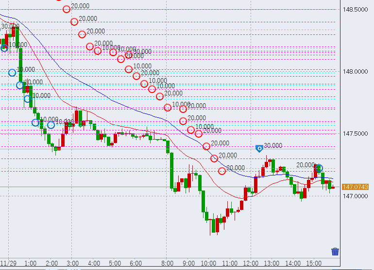 15時過ぎ小反発。まだ下げそうです。146円付近まで落ちれば決済し、買い直そうと考えています。