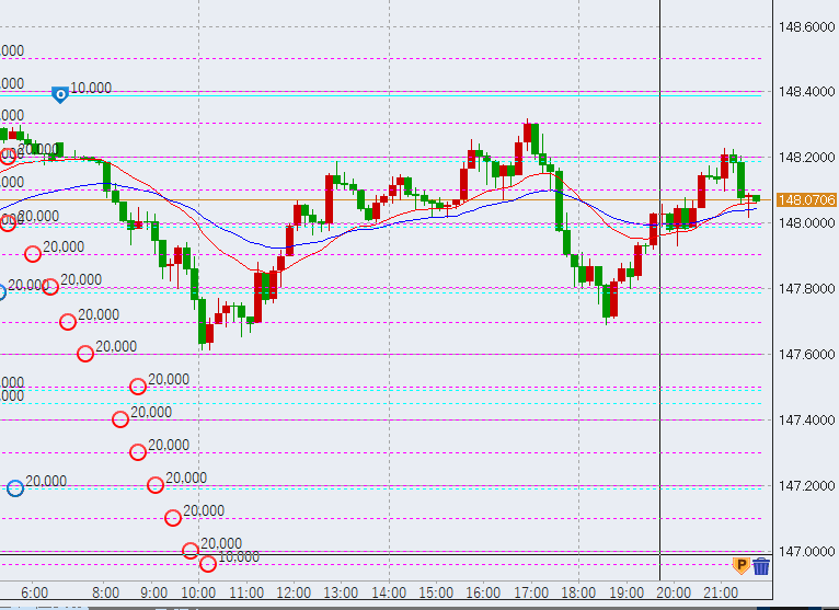 早朝は小反落。このまま上昇し、高値を上抜ければ149円を目指すと思われます。買いは149円程度までは2万ずつ進める予定です。
