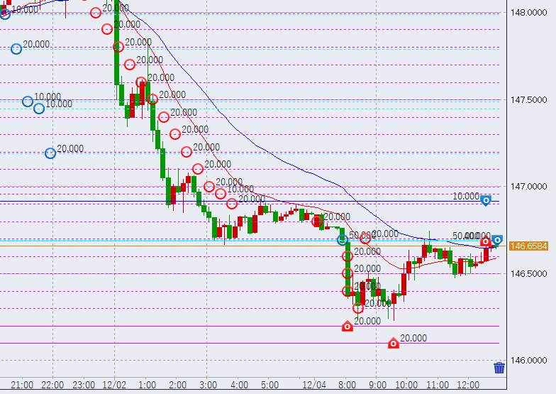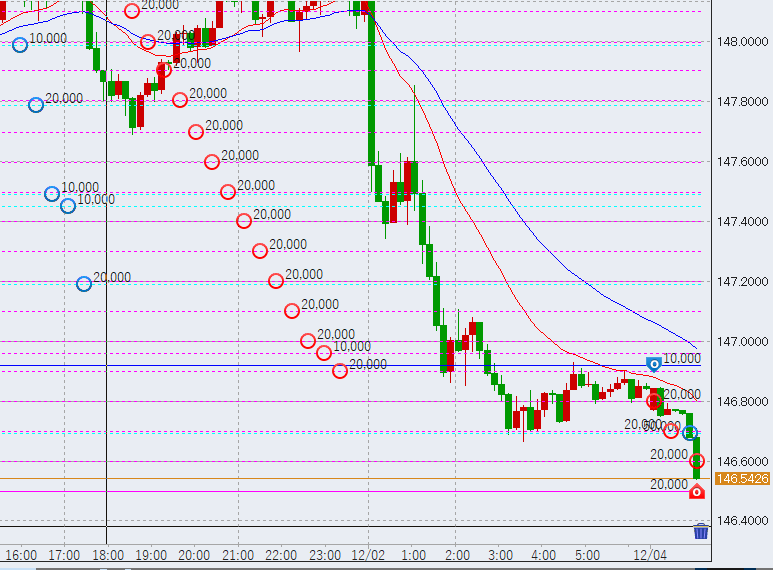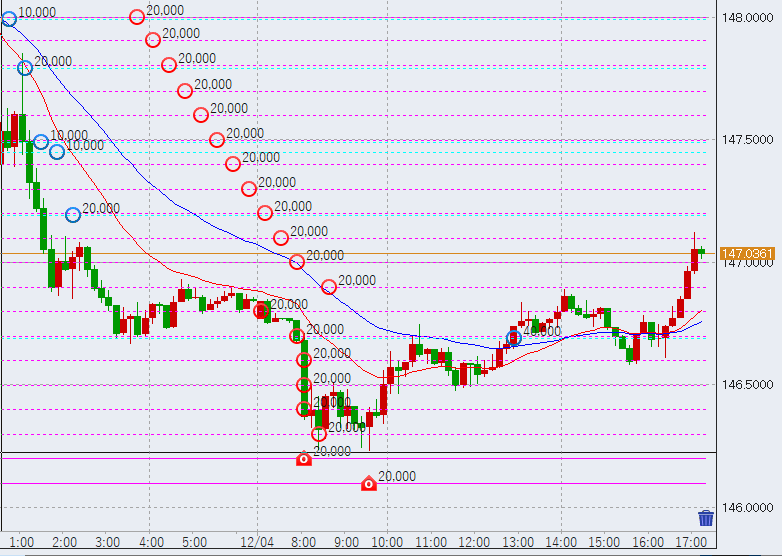 17時過ぎ反発し147円代へ。含み損は-10万円程度となりました。現在買いが46万、売りが13万程度です。