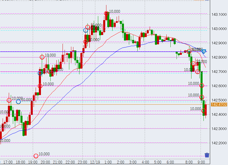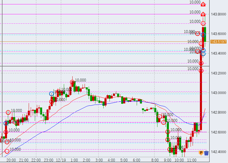 11時過ぎ日銀緩和継続でドル高の流れ。143.6円を回復。