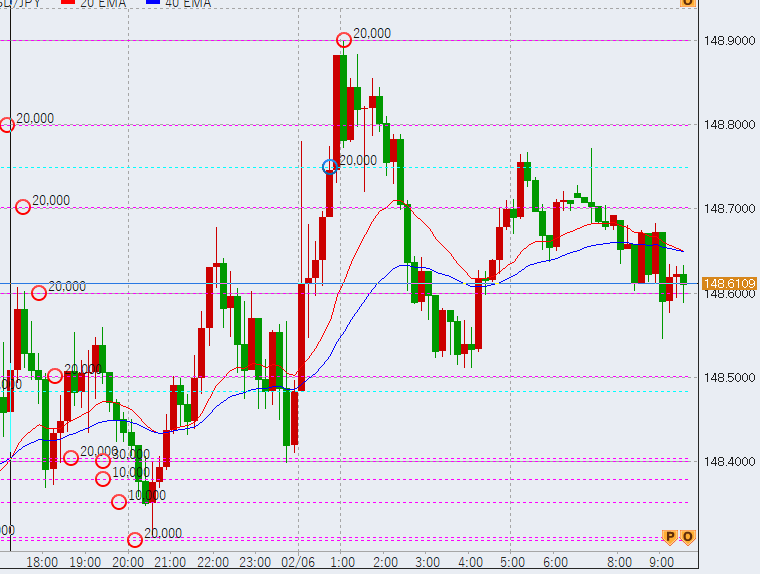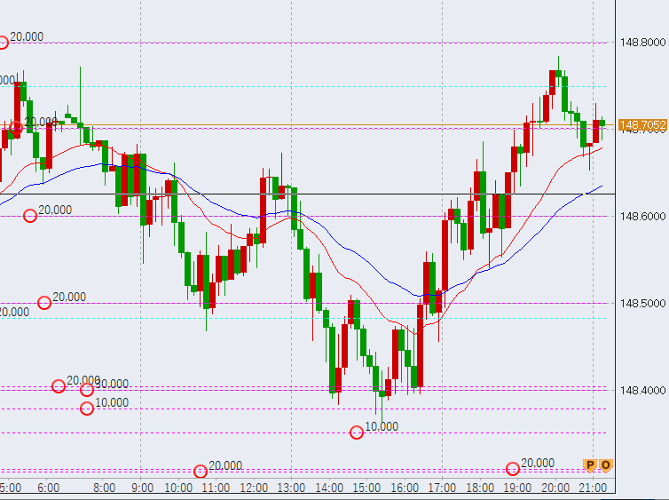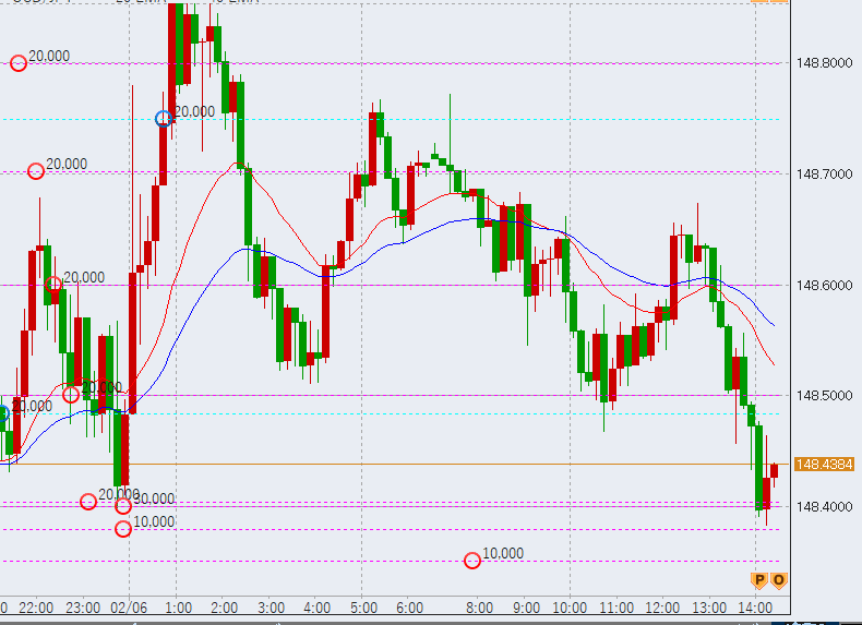 午後は低調。148.4円まで低下してきました。まだ下げてきそうです。