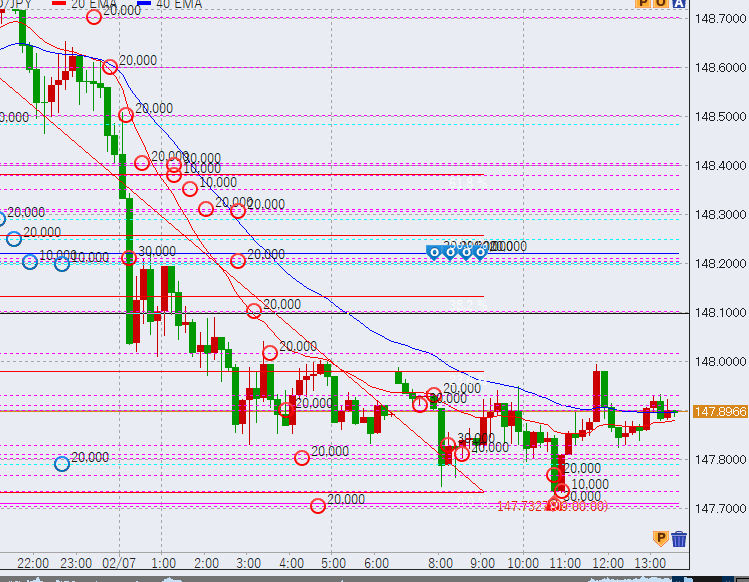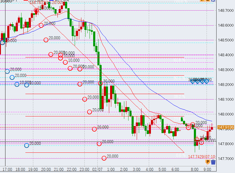 こんにちは真開燦です!前日夜は高値から反落の流れとなり、本日朝時点で147.8円付近です。