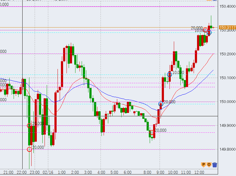 昼過ぎ150.3円まで上昇。半値戻し達成したのでここから下げてくる可能性あり。