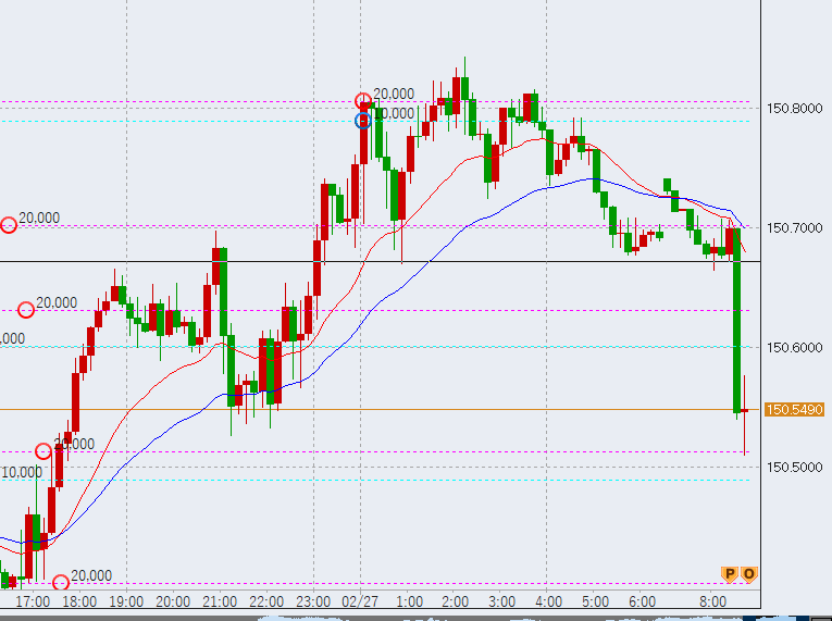 2024年02月27日FXドル円相場取引解説 こんにちは真開燦です!前日も引き続きドルが上昇。150円代後半まで値を押し上げてきました。 環境認識と今日の作戦 1:上昇 4:上昇 日:上昇 週:上昇 月:上昇 2024年2月27日含み益 現在の含み益一部。 本日の値動き 2024年2月27日FXドル円10分足 日本、物価指数が上振れでやや円高に。150.5円付近。