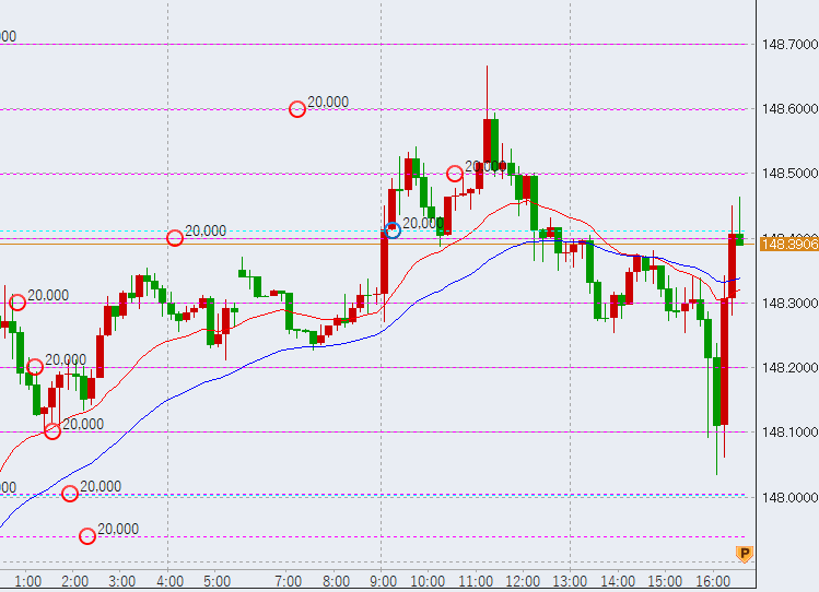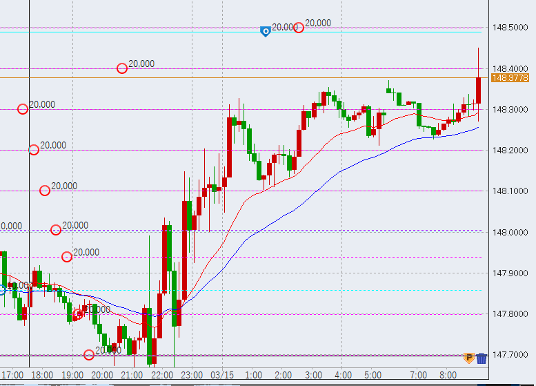 早朝日本時間は上昇スタート。148.5円手前です。
