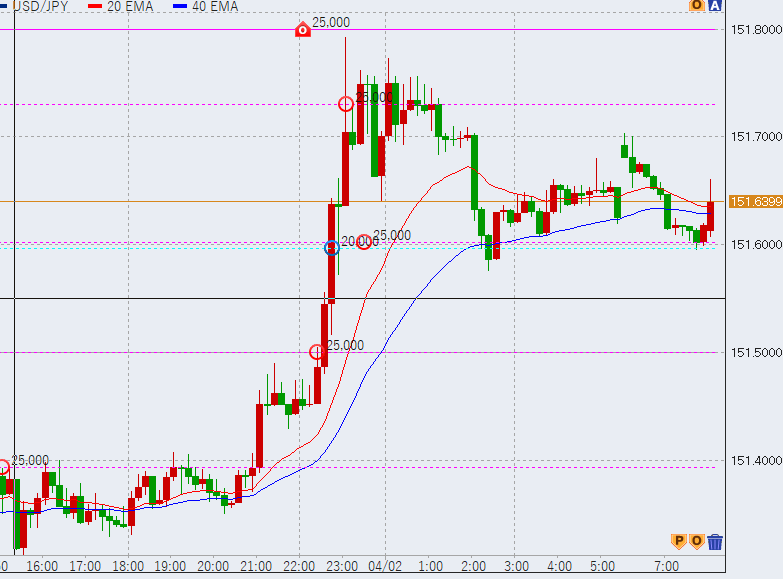 こんにちは真開燦です!前日のドル円はレンジを上抜け、高値151.8円に迫りました。本日朝時点で151.6円付近となっています。