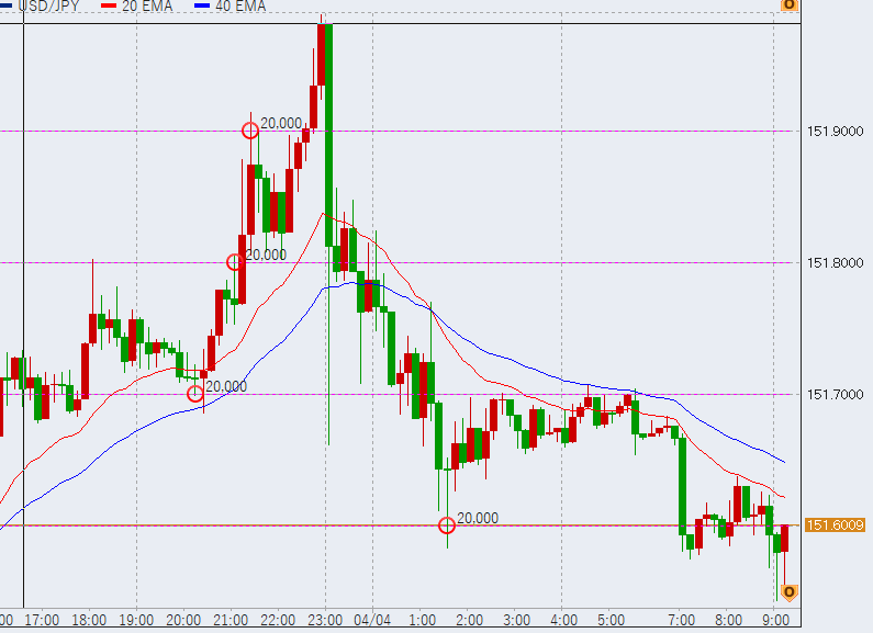 こんにちは真開燦です!前日は高値151.9円を超すもまたもや反落。本日朝時点で151.6円付近となっています。