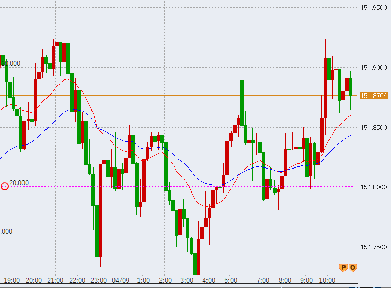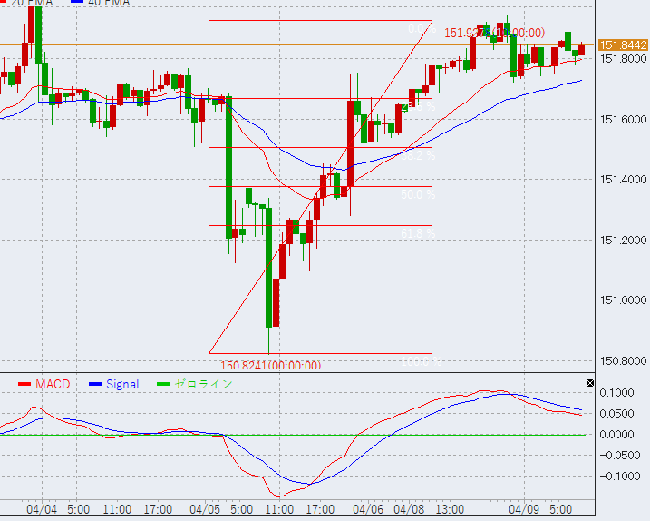 朝8時過ぎの1時間足。152円抜けでの反応が気になる所です。